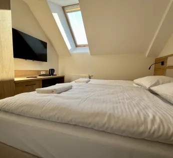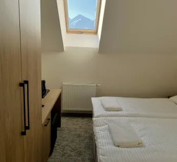 Affordable and ergonomicEconomy Twin Rooms (13.5 m²) feauture two beds (mattresses: 2 x 90 cm) that can be joined together. We offer two economy rooms with skylight windows and a private bathroom with a shower. Please note that these rooms do not have balconies.