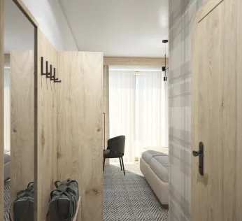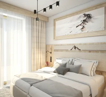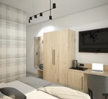 Family-friendly and functionalFour-Person Rooms with Kitchenette (22 m²) are an excellent choice for families with children, but not only. The rooms are furnished with two beds (mattresses: 2 x 90 cm) that can be joined together, as well as a double sofa bed (140 cm). We offer 2 such rooms, one of which includes a balcony. In addition to the kitchenette, the rooms are equipped with a bathroom with a shower.