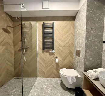 Comfortable and stylishTriple Rooms (19 m²) are furnished with two beds (90 cm mattresses) that can be joined together to form a double bed, plus an additional rollaway bed. These rooms are ideal for groups of friends or families with older children. All 8 rooms include a private bathroom with a shower.