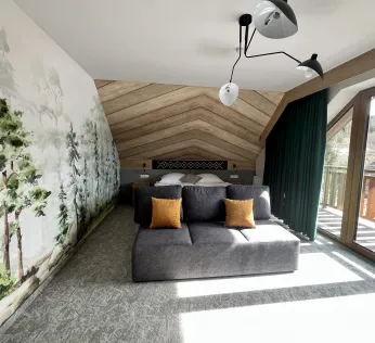 s nezabudnuteľným výhľadom...Javorinka Resort ponúka päť moderných apartmánov (25 m²) pre štyri osoby, zariadených v alpskom štýle. Každý apartmán je vybavený dvoma lôžkami (matrac 2 × 90 cm) s možnosťou spojenia rámov a dvojmiestnou rozkladacou pohovkou (140 cm). Všetky apartmány majú balkón, z ktorého sa naskytá nezabudnuteľný výhľad. Kúpeľne sú vybavené vaňou.
